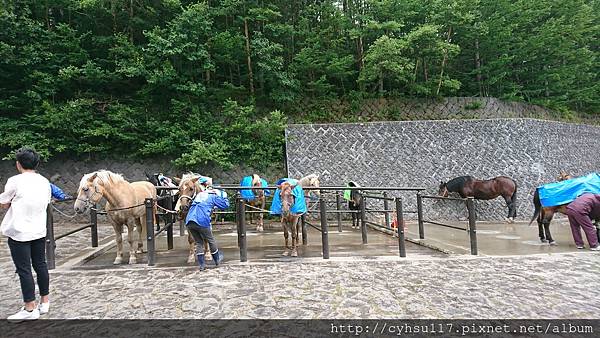 一開始會先走一小段微微下坡的舒服道路到五合目登山口, 而不想走這段路的還有馬匹可供你騎, 但收費不便宜, 好像是好幾千, 可能來五合目觀光的觀光客嘗鮮會來騎一下吧。