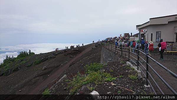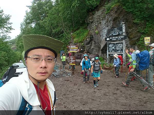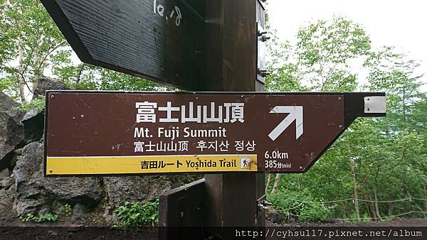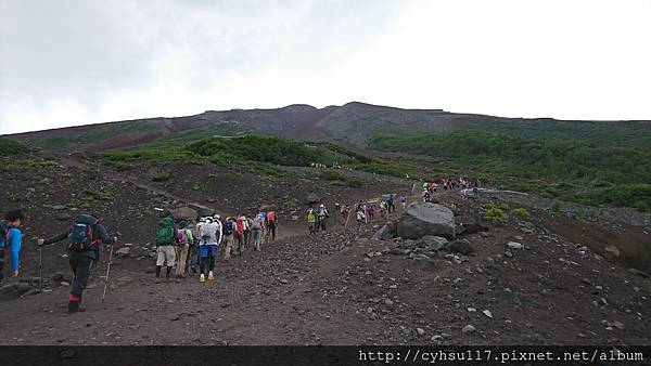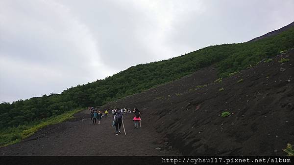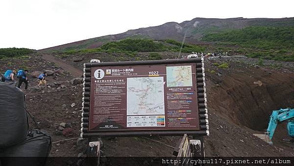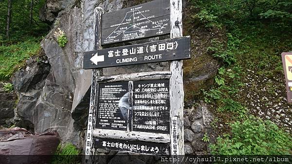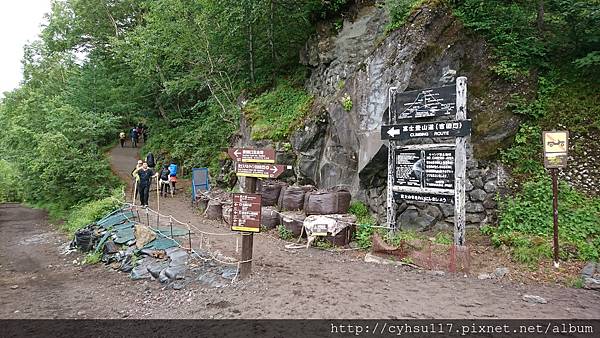 大概走了 20 幾分鐘, PM 1:20, 到達了五合目登山口, 至此才是真正的五合目吉田口登山道入口, 準備要爬往六合目的。因為這是我人生第一次爬高山, 見到了初始攀登狀態心中也沒啥感覺, 也不知道之後會遇到什麼狀況, 反正爬就爬呀, 因為, 我就是條狗呀。