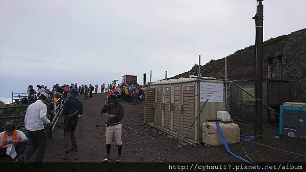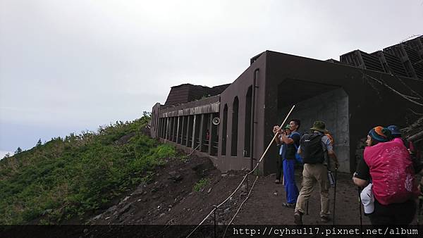 此時約莫 下午 2: 15 分, 在前面的山屋看到這裡竟然是六合目, 天啊, 五合目到六合目竟然是這麼輕鬆寫意? 體力連 1% 都還沒耗費到呢! 且只剩下六合目到七合目, 七合目到八合目, 八合目到山頂要爬, 此時開始擔心這兩天的運動量會不太足夠了呢 OAO!