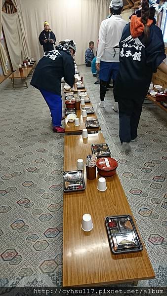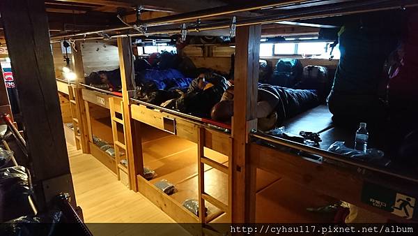 進到山屋, 工作人員會給一個塑膠袋裝鞋, 找到自己的床位後, 放置好背包和鞋子