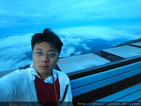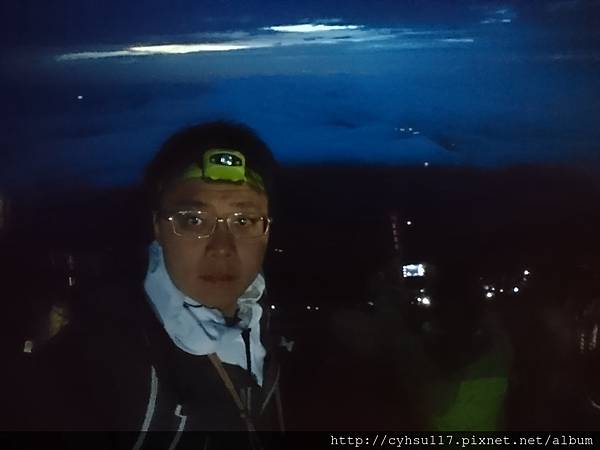 一直站著站到膝蓋小腿好痠了, 此時約莫早上 4:25 左右, 日出還是沒出現, 我只能一直自拍 OAO