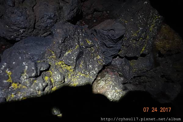 在這裡我記錄了一下這裡的岩石, 上面有些黃黃綠綠的痕跡, 我沒念多少書, 所以不太知道這是什麼, 但如果硬要猜測的話, 有可能是硫磺, 也有可能是青苔植物, 或熊熊的尿垢。