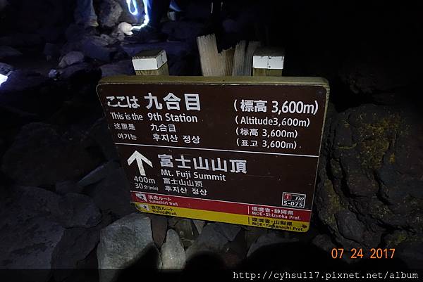 拍完尿垢, 繼續往前走, 終於到達九合目囉, 3600m, 還剩下 30 分鐘, 400m 就到山頂了, 此時覺得, 挖靠, 爬富士山其實也滿輕鬆的呀, 只是走得時間比較長而已。然後在這個時候突然感覺手只有稍微麻麻的感覺, 內心突然一陣欣喜: 我的丹木斯終於有副作用了! 代表這藥真的有效, 十分開心愉悅。抱著愉悅的心繼續往上爬。