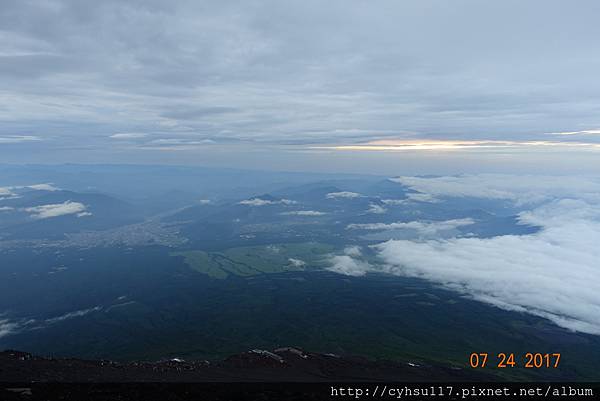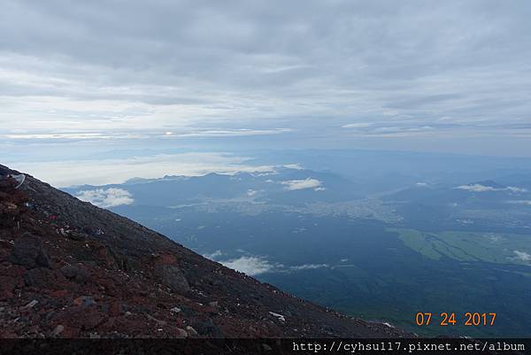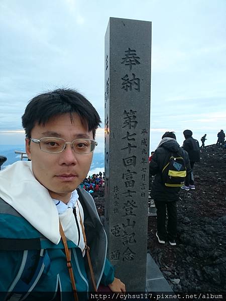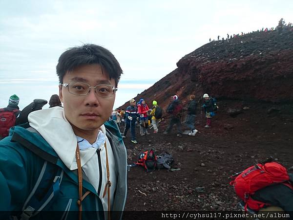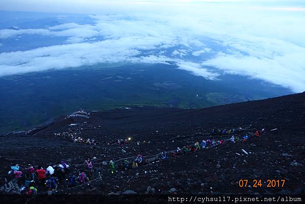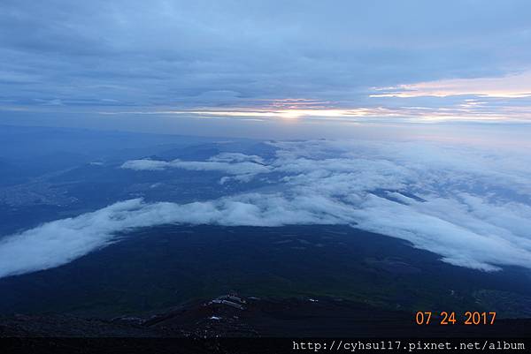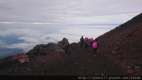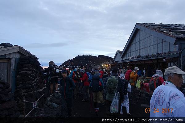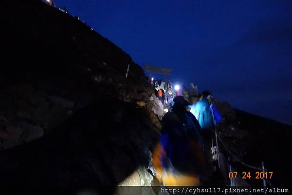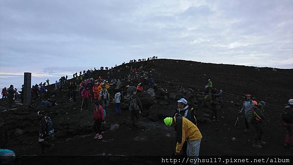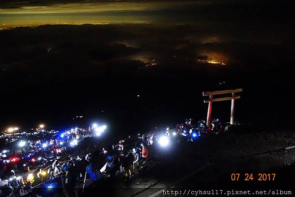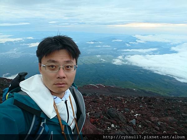 本篇文章敘述從八合目爬到山頂的過程, 和富士山山頂的景色, 與富士山御來光日出。