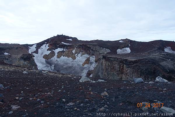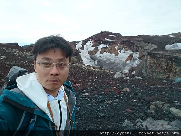 然後和還留有一點積雪?的火山口?合照, 就準備下山了